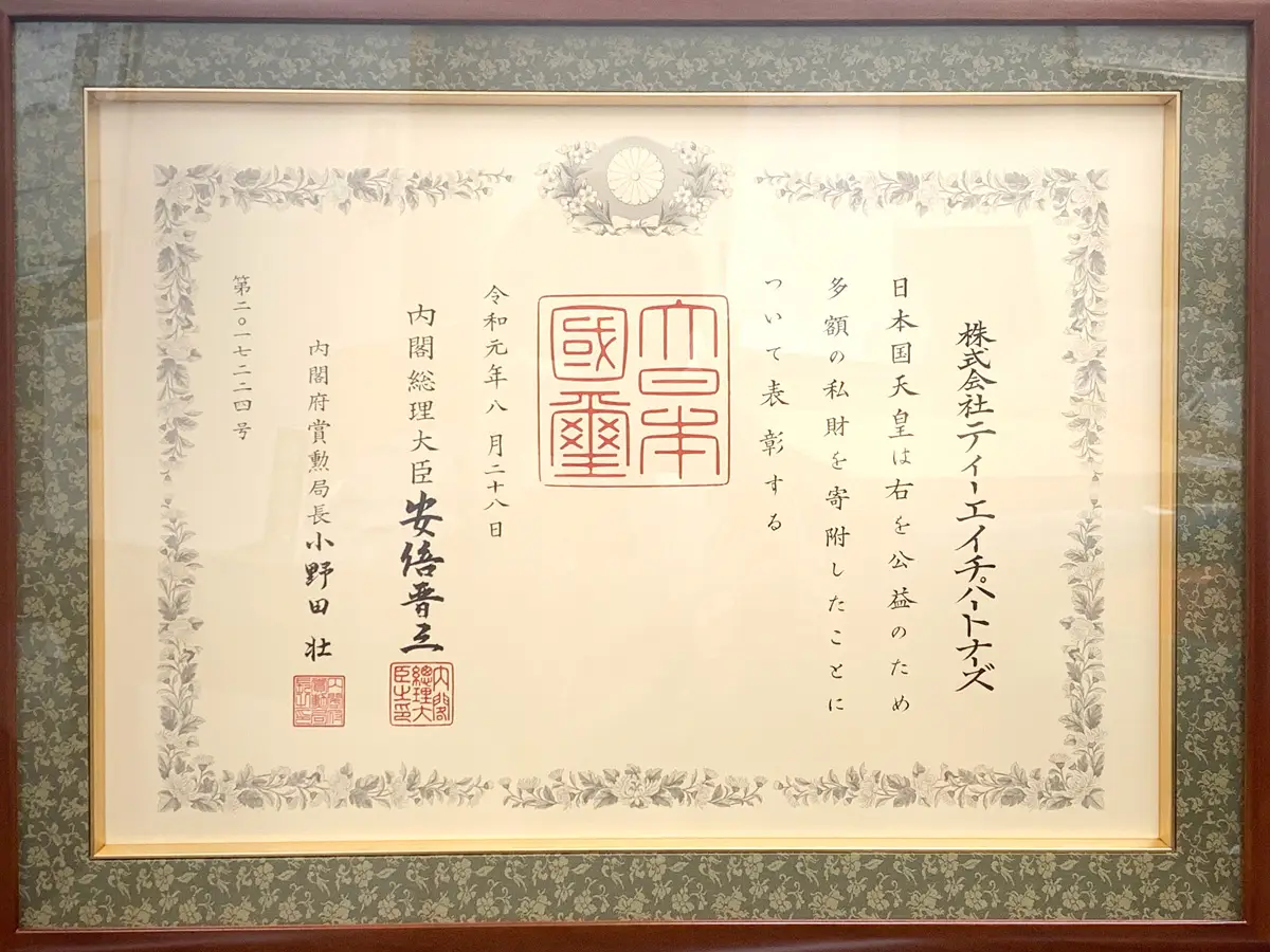 THパートナーズが紺綬褒章を受章いたしました。 press release