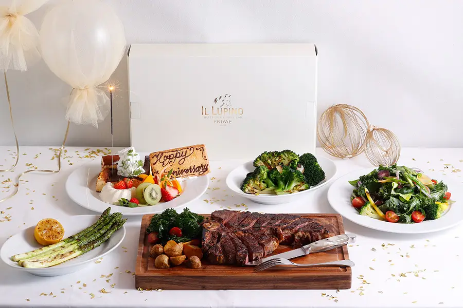 誕⽣⽇や記念⽇、お祝いやホームパーティーに、シェフによる本格的な味をご⾃宅でもお気軽にお楽しみいただける、アニバーサリーのテイクアウトBOXが登場します。USDA PRIME T-BONE ステーキや、シェフ特製のアニバーサリープレートがセットとなり、特別な⽇を演出するために華やかにお祝いいたします。