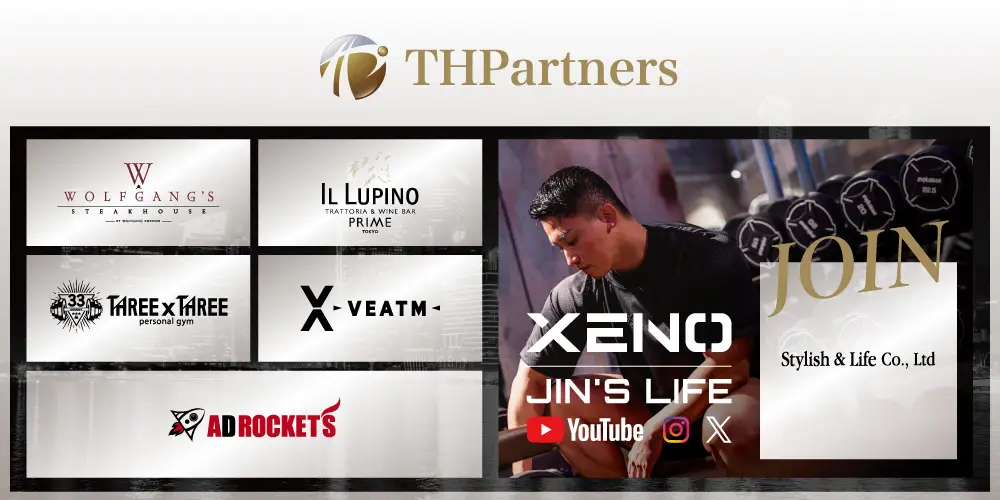 「ウルフギャング・ステーキハウス シンガポール」やトレーニングウェアブランド「VEATM」を手掛けるTHパートナーズ、SNS総フォロワー数80万以上を誇るIFBB PROフィジーカー小池友仁(JIN)が率いるStylish & Lifeと資本業務提携【全株式取得】を締結